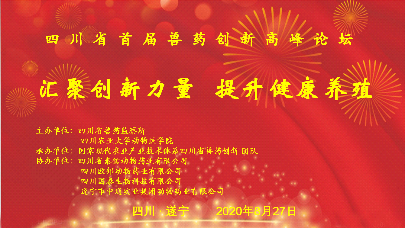 2020年8月27日,四川省首届兽药创新高峰论坛在遂宁明星康年大酒店隆重举行并取得圆满成功。