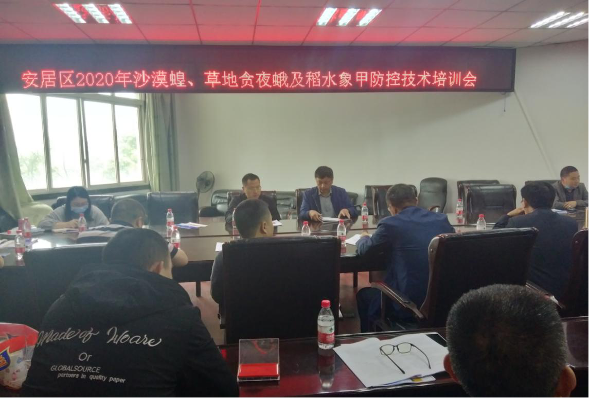 2020年4月20日,安居区农业农村局召开草地贪夜蛾等重大病虫防控技术培训会,各镇农业服务中心、新型经营主体及农药经营企业负责人参加了会议。总农艺师王桂林主持并讲话。