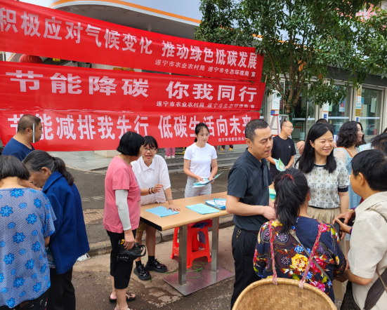 7月14日,为积极营造节能降碳浓厚氛围,市农业农村局、市生态环境局、安居区农业农村局在安居区三家镇联合举办以“节能降碳,你我同行”“积极应对气候变化,推动绿色低碳发展”为主题的宣讲活动,旨在推进习近平生态文明思想进农村,推广农业绿色低碳生产技术,推动形成绿色低碳的生产生活方式,提高广大农户环保意识,进一步提升农村生态环境质量。