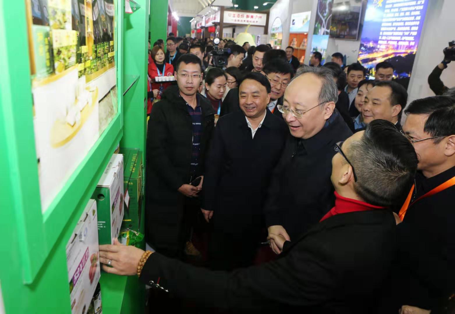 开幕式后,尹力等省领导在副市长雷刚陪同下参观了遂宁展馆,特别对"遂宁鲜"区域公用品牌推广和助力脱贫攻坚发挥的重要作用给予高度评价。