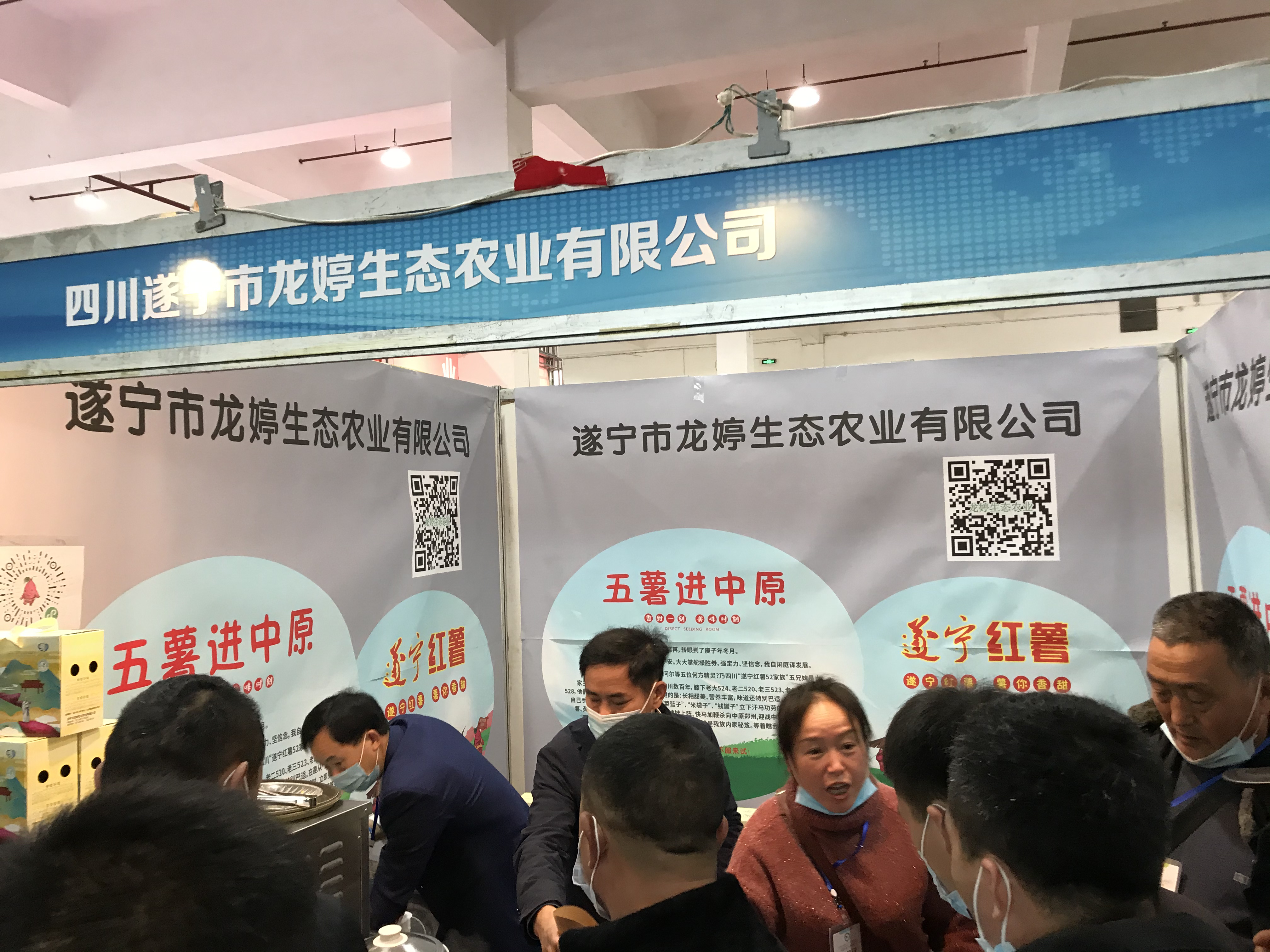12月26-27日,2020中国甘薯产业博览会在郑州中原国际博览中心隆重举行。国家甘薯产业技术体系首席科学家马代夫、河南省甘薯杂粮体系首席科学家王自力等莅临出席。遂宁市农业农村局副局长刘罡霏、总农艺师张羽带领农业系统、遂宁红薯专委会、红薯种植及加工企业代表一行组团考察学习,其中遂宁市龙婷生态农业有限公司代表“遂宁红薯”参展。