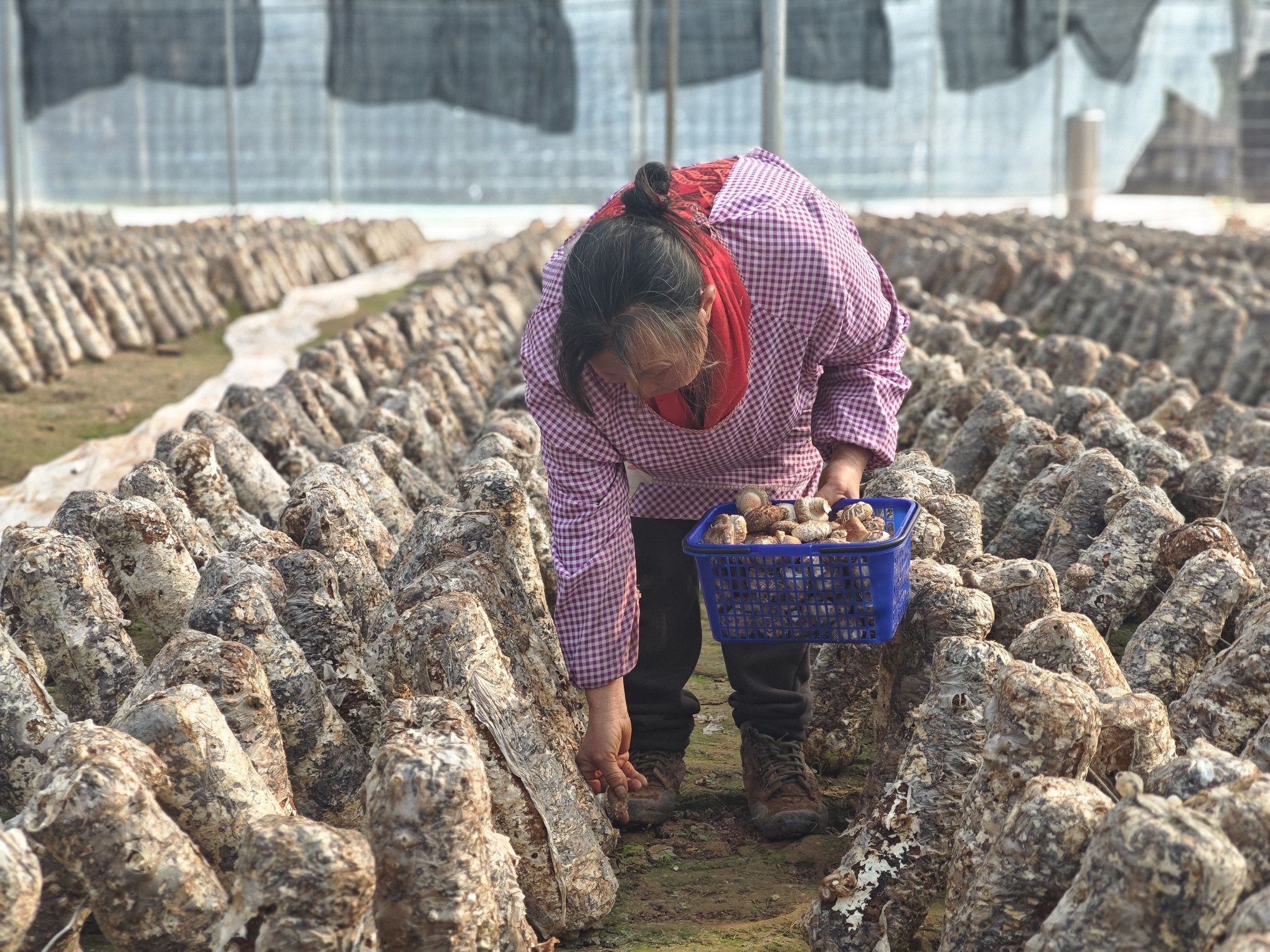 在基地的另一边,村民们正在对采收完毕的香菇菌包进行注水处理。据介绍,香菇生长对湿度和温度有着严格的要求,村民们必须赶在节后气温回暖前对整个基地内15个香菇菌包全部进行注水,才能满足下一茬香菇的生长需要。自2月11日(大年初二)以来,基地已经全面复工,截至目前已完成6万包菌包的采摘和注水工作。“预计还有半个月就可以完成整个基地15万包菌包注水工作。”邓先建介绍。