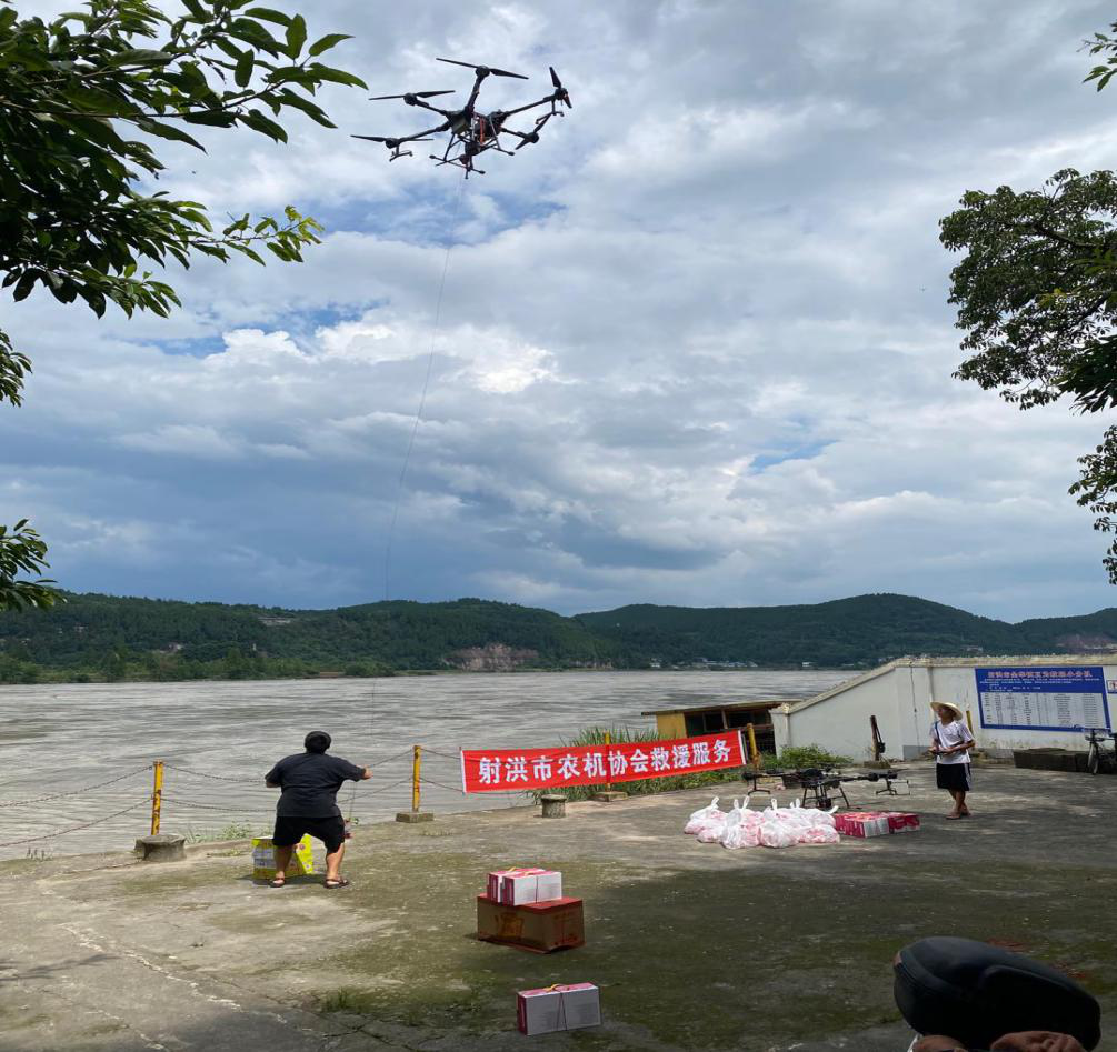 近日,受涪江上游地区持续强降雨影响,我市涪江流域发生特大洪水,导致金华镇黑水浩村和金华坝河心洲成为“孤岛”,两处均有数十名群众被困,被困群众的生活必需品成为亟需解决的难题。8月16日,射洪市农业农村局农机化股主动作为,及时组织射洪市农机协会成员单位带上无人机等救援工具第一时间驰援受灾现场。16日至19日,农机协会累计出动无人机28台/次,车辆10台/次,人员36人/次,无人机吊运物资近2吨,起飞200余架/次,确保了被困群众生活物资需要,基本生活得到有效保障。(射洪市农业农村局)