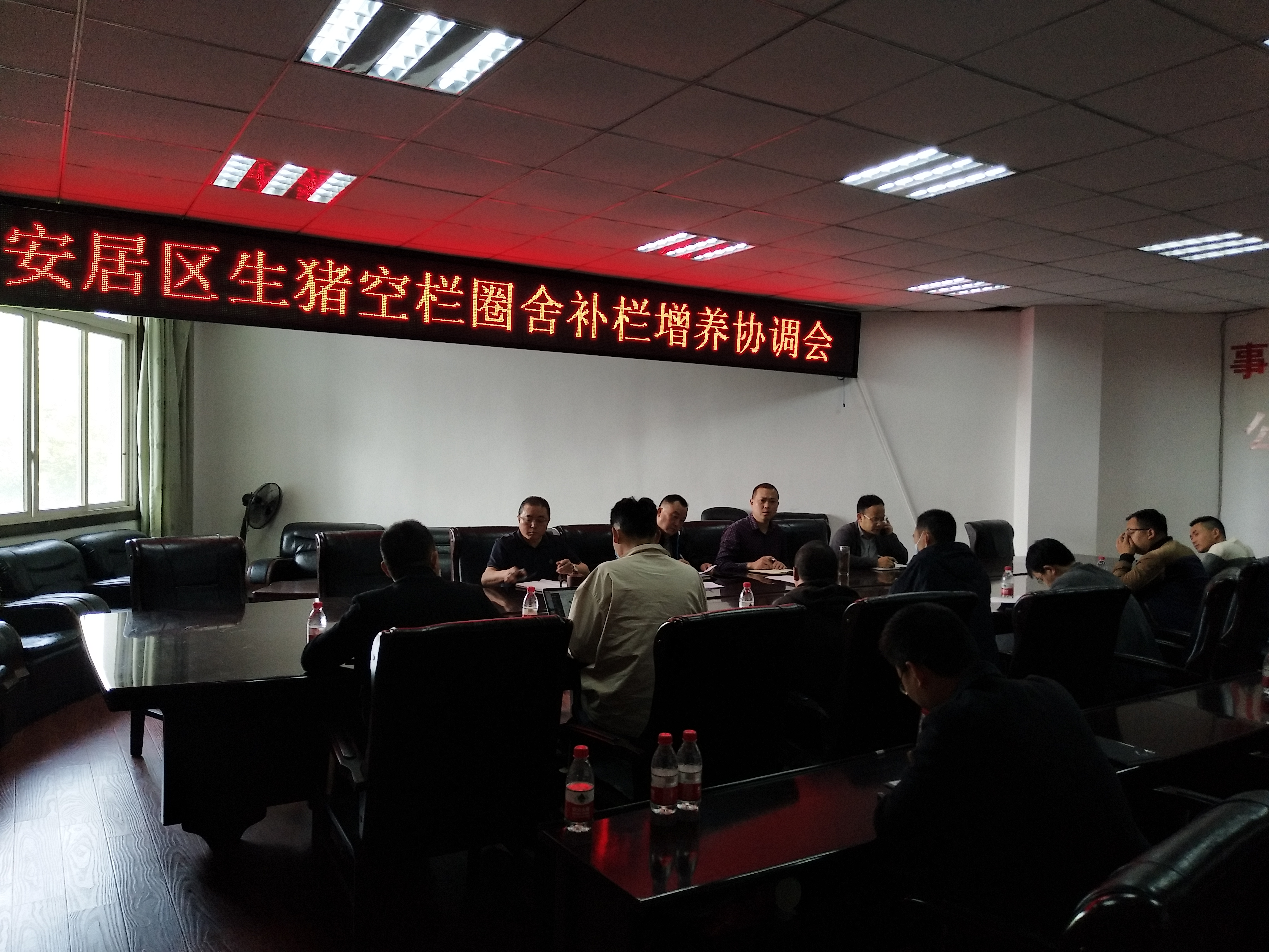 2020年4月26日,安居区非洲猪瘟防控和恢复生猪生产指挥部组织召开生猪空栏圈舍补栏增养协调会,会议由区指挥部办公室副主任唐辉主持。