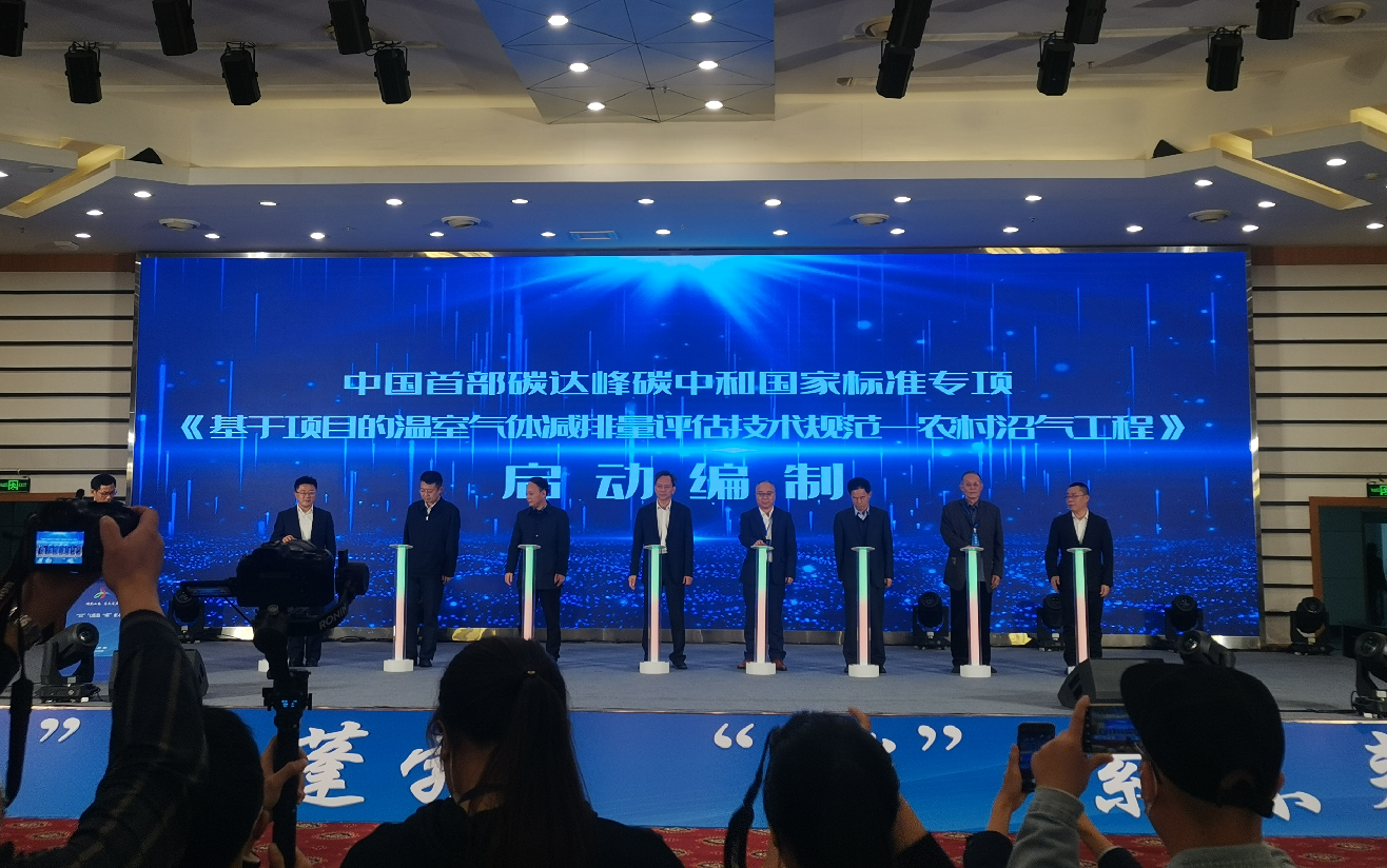 研讨会上,农业农村部沼气科学研究所副所长王超发布了由农业农村部沼科所与安居区联合制定的《中国首部农村“低碳社区”遂宁方案》,李江、王登山、景临等领导、嘉宾共同按键,正式启动中国首部碳达峰碳中和国家标准专项《基于项目的温室气体减排评估技术规范——农村沼气工程》编制工作。