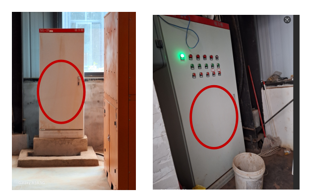 烘干房、配电室等区域部分配电柜无安全警示标志。