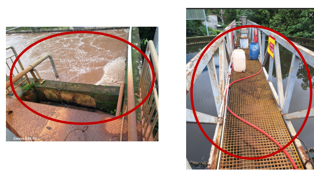 整改要求:生产经营单位须按法规标准要求对药剂添加池、廊桥作业区等池规范设置盖板、栏杆或者防护网等安全防护设施,预防人员意外掉井事故发生。