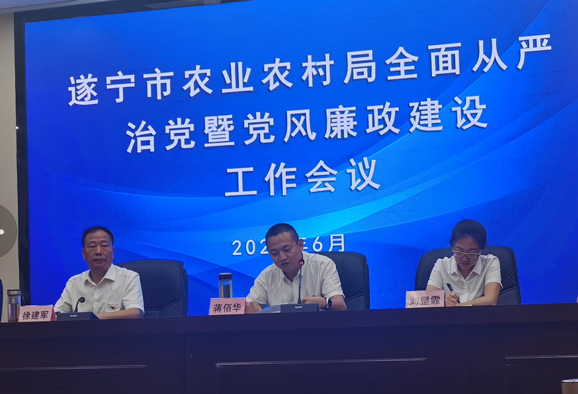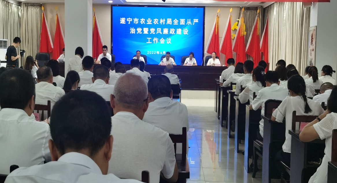 2022年6月30日下午,遂宁市农业农村局召开2022年全面从严治党暨党风廉政建设工作会议。会议传达贯彻了十九届中央纪委六次全会和中央、省委、市纪委全会精神,对2022年市农业农村局全面从严治党、党风廉政建设和反腐败工作进行安排部署,有力推动全面从严治党向纵深发展。