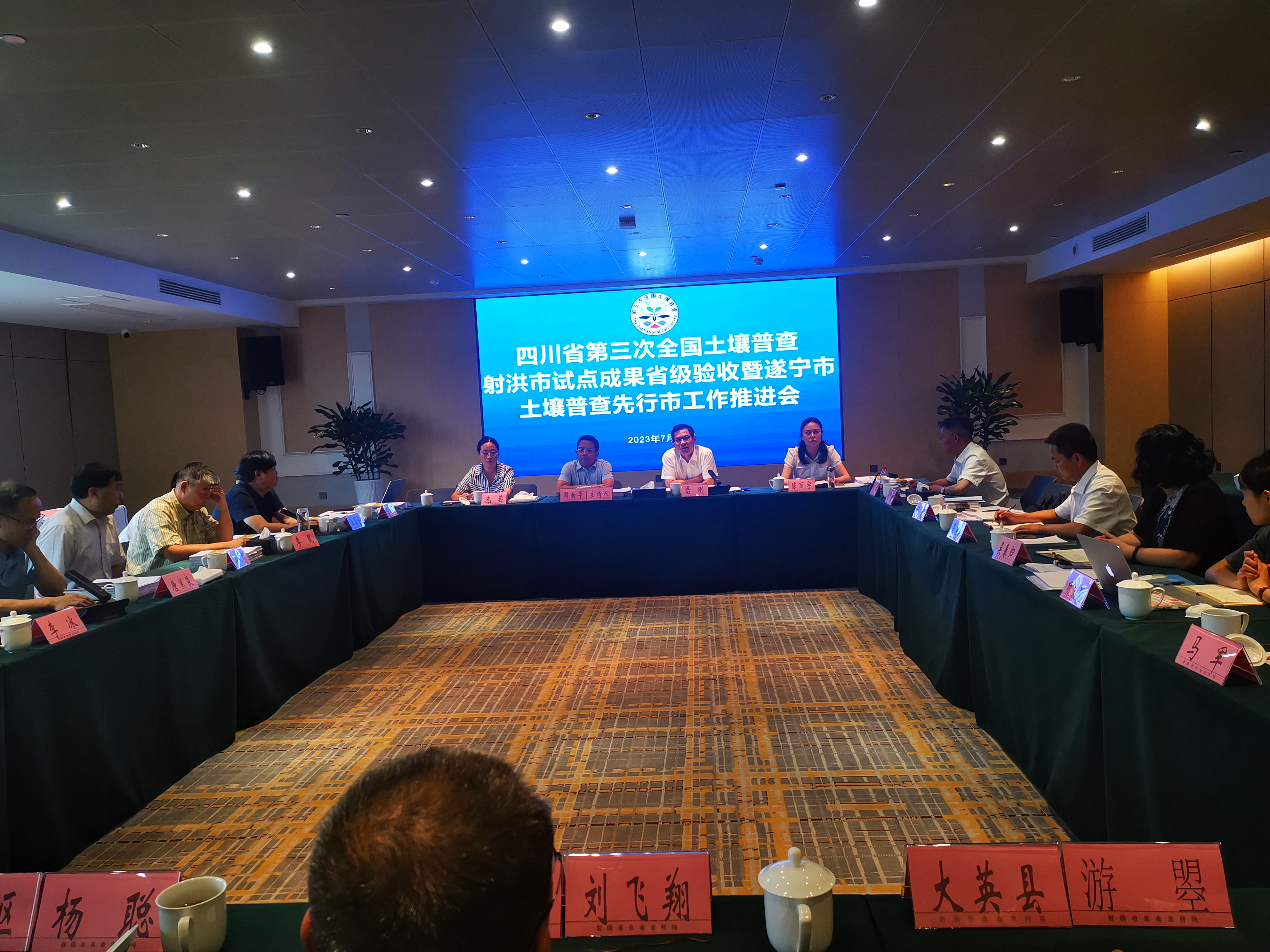 为全面总结第三次全国土壤普查试点经验,形成高质量普查成果,7月13-14日,第三次全国土壤普查射洪试点成果省级验收暨遂宁市土壤普查先行市工作推进会在射洪市召开。省农业农村厅二级巡视员、省土壤普查办副主任周南华、遂宁市委常委、副市长、市委政法委书记、市土壤普查领导小组组长雷刚、射洪市副市长陈丽宇、省市专家联合验收组出席会议。市三普办人员以及各县(区)三普办、专业技术人员参加了会议。