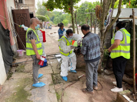 防疫队伍统一着装,个人安全防护到位。严格按照“人畜同防”工作要求,开展免疫和消毒的工作人员均配穿“白大褂”与筒靴(或鞋套)、戴一次性口罩与手套,村社带队人员和畜牧兽医站挂片职工穿防疫马甲、戴一次性口罩与手套,严防因个人防护不当导致人畜交叉感染。