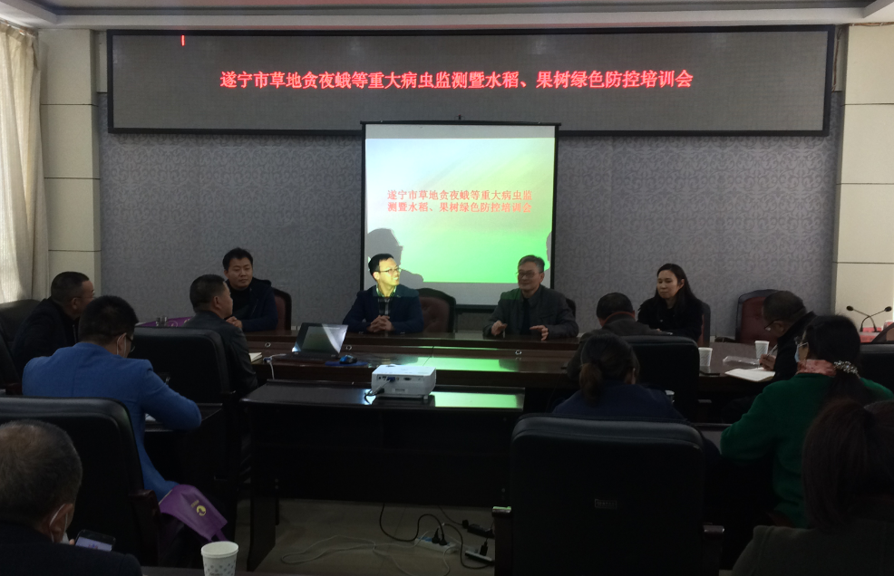 3月30日,遂宁市植保站组织召开全市草地贪夜蛾等重大病虫监测及绿色防控技术培训会。会议邀请温州医科大学副研究员、昆虫分类学博士冯波对草地贪夜蛾成虫、幼虫形态特征识别、生活习性、危害特点、监测方法、防控措施等进行了全面系统讲解,同时利用实物标本开展现场识别培训,对我市草地贪夜蛾监测防控起到重要推广应用作用。