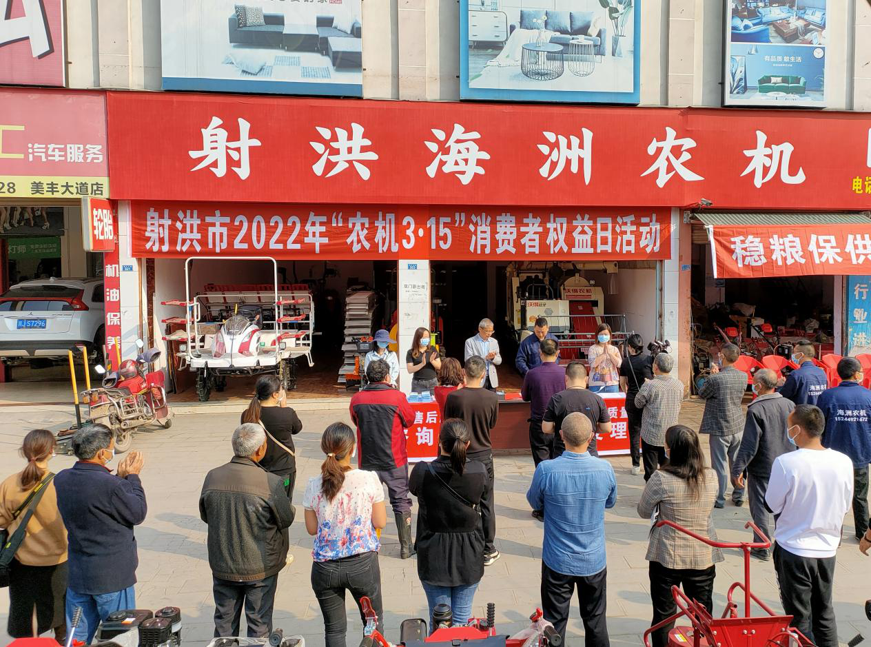 3月15日,射洪市农业农村局组织开展“农机3·15”消费者权益日活动。活动以“稳粮保供,提质护农”为主题,发布了《稳粮保供,提质护农》倡议书,射洪海洲农机公司负责人代表销售商宣读《保障农机质量,加强售后服务承诺书》,10家农机销售商分别签订了《承诺书》。发放《农机质量投诉常见问题问答》、《农机质量投诉服务卡》、《农机安全宣传手册》、《农机报废补贴工作告知卡》等宣传服务资料1100余份,接受群众现场咨询120人次。现场还举办了小型微耕机、大豆复合套种机械等新型先进农机设备展示展销。活动现场气氛热烈,群众踊跃参与,并通过新闻媒体广为传播。通过此次活动,宣传了国家惠农政策,有效提高了农机购机户理性购机、安全用机、依法维权意识,增强了农机产销企业社会责任感和诚信经营意识,为保障春耕生产顺利进行,助力粮油增产农民增收营造了良好氛围。