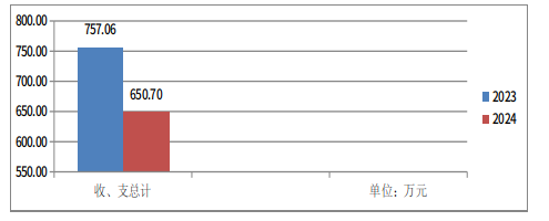 2024年度收入、支出总计均为650.7万元。与2023年度相比,收入、支出总计各减少106.36万元,下降14.05%。主要变动原因是厉行节约,缩减财政开支。