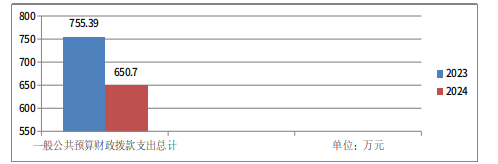 2024年度一般公共预算财政拨款支出650.7万元,占本年支出合计的100%。与2023年度相比,一般公共预算财政拨款支出减少104.69万元,下降13.86%。主要变动原因是厉行节约,缩减财政开支。