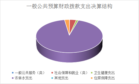 2020年一般公共预算财政拨款支出8333.57万元,主要用于以下方面:一般公共服务(类)支出12.64万元,占0.15%;社会保障和就业(类)支出280.91万元,占3.37%;卫生健康支出96.61万元,占1.16%;农林水支出7737.76万元,占92.85%;其他支出1.75万元,占0.02%;住房保障支出203.9万元,占2.45%。