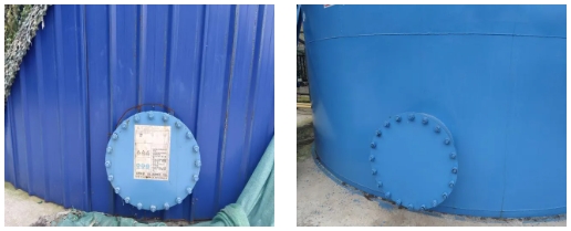 整改要求:沼气发酵罐、湿式气柜检修出入口(人孔)设置规范的安全警示标志。