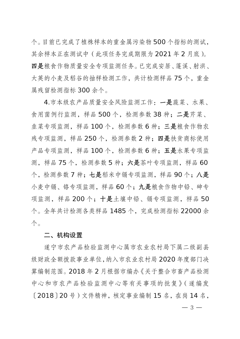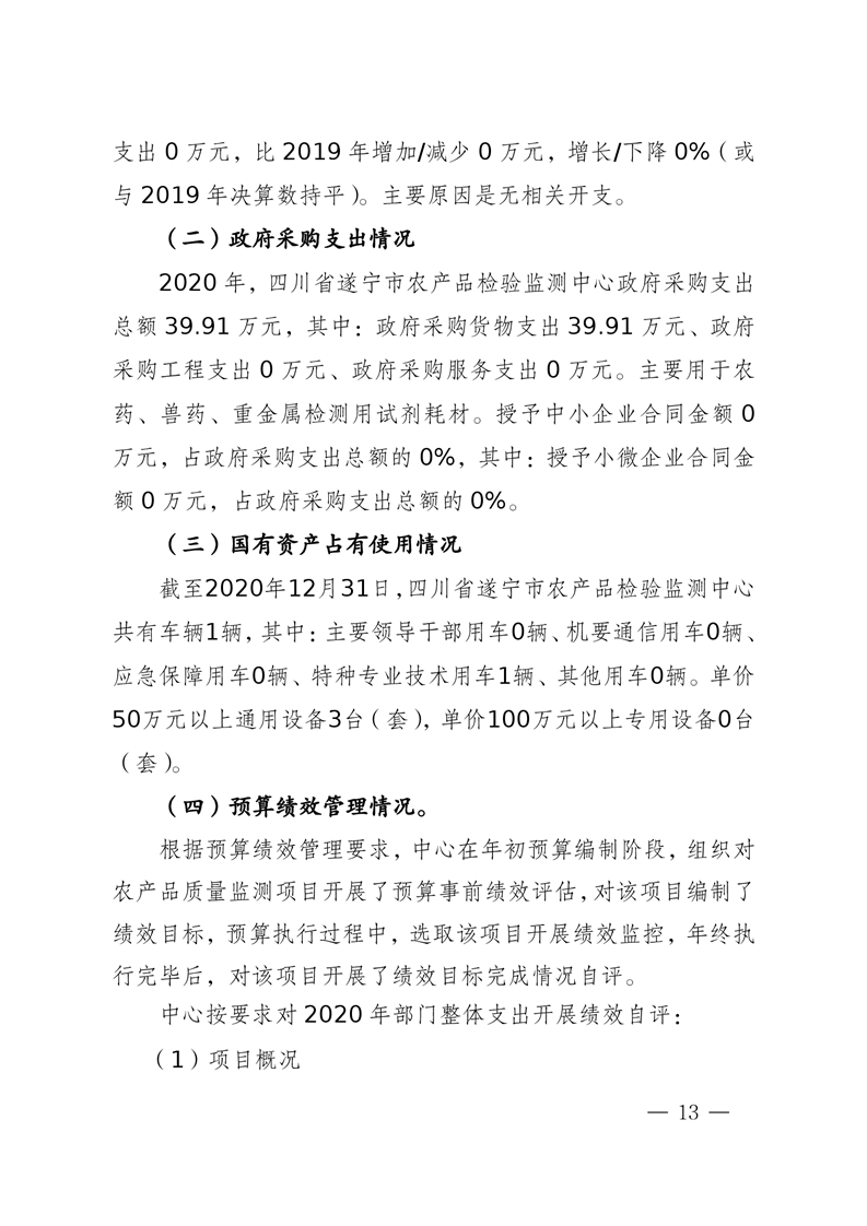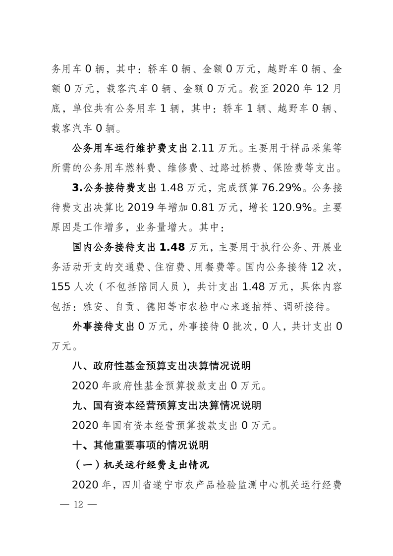 2020年度 四川省遂宁市农产品检验监测中心决算
