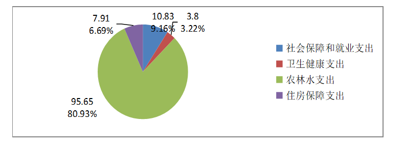 2023年度一般公共预算财政拨款支出118.2万元,主要用于以下方面:一般公共服务支出0万元,占0%;教育支出0万元,占0%;科学技术支出0万元,占0%;文化旅游体育与传媒支出0万元,占0%;社会保障和就业支出10.83万元,占9.16%;卫生健康支出3.80万元,占3.22%;住房保障支出7.91万元,占6.69%;农林水支出95.65万元,占80.93%。