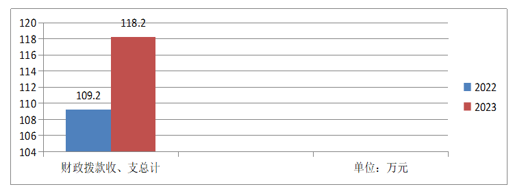 2023年度财政拨款收、支总计均为118.20万元。与2022年度相比,财政拨款收、支总计各增加9万元,增长8.24%。主要变动原因是人员类经费增加。(注:数据来源于财决01-1表)