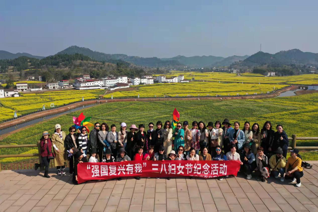 活动首先现场参观蓬溪县高升乡万亩粮油现代农业园。通过现场参观油菜基地、油菜科普中心、特色农产品展示展销等,看到了农业、科研、旅游发展相结合,经济、社会、生态效益相统一的产业发展模式,女同胞们非常高兴,纷纷建言献策,思考怎样强链条补短板,为园区发展献一份力。