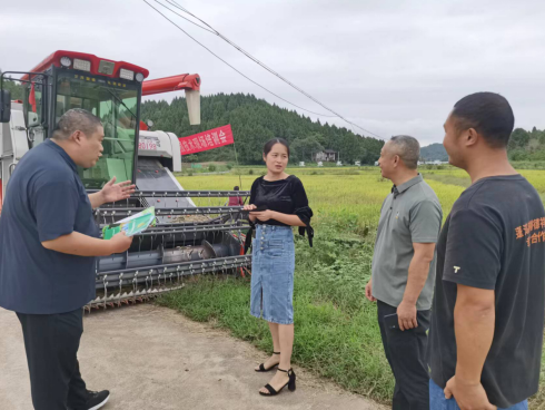 工作组一行在蓬溪县文井镇观摩指导了水稻收割作业,向现场围观群众、驾驶员以及合作社负责人发送农机安全宣传警示图册,普及农机安全相关知识,同时对作业联合收割机安全技术状况、牌证是否齐全以及驾驶员是否办理证件、酒后驾驶、违法载人等进行了检查,未发现违法违规行为。