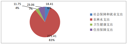2021年一般公共预算财政拨款支出324.63万元,主要用于以下方面:农林水支出(类)支出271.41万元,占83.61%;社会保障和就业(类)支出18.41万元,占5.67%;卫生健康支出11.75万元,占3.62%;住房保障支出23.06万元,占7.1%。