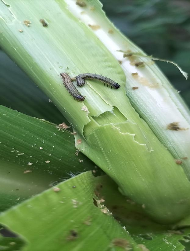 截至目前,我区已发现草地贪夜蛾危害面积1600余亩,从一龄到五龄幼虫同时存在,百株虫口密度平均3头,百株被害株率达3-5%,严重中心田块百株虫口密度甚至达到10头以上。